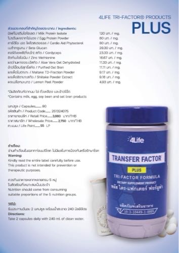 ผลิตภัณฑ์ เสริมอาหาร 4ไล้ฟ์ ทรานสเฟอร์ แฟกเตอร์ พลัส ไตร-แฟกเตอร์ ฟอร์มูล่า (เลขที่ อย.10-3-10449-1-0005)