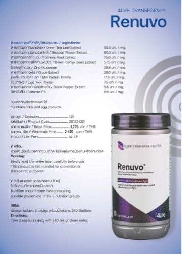 ผลิตภัณฑ์ 4ไล้ฟ์ ทรานสเฟอร์แฟกเตอร์ รีนูวโว (เลขที่ อย.)(เลขที่ อย.10-3-10449-1-0017)